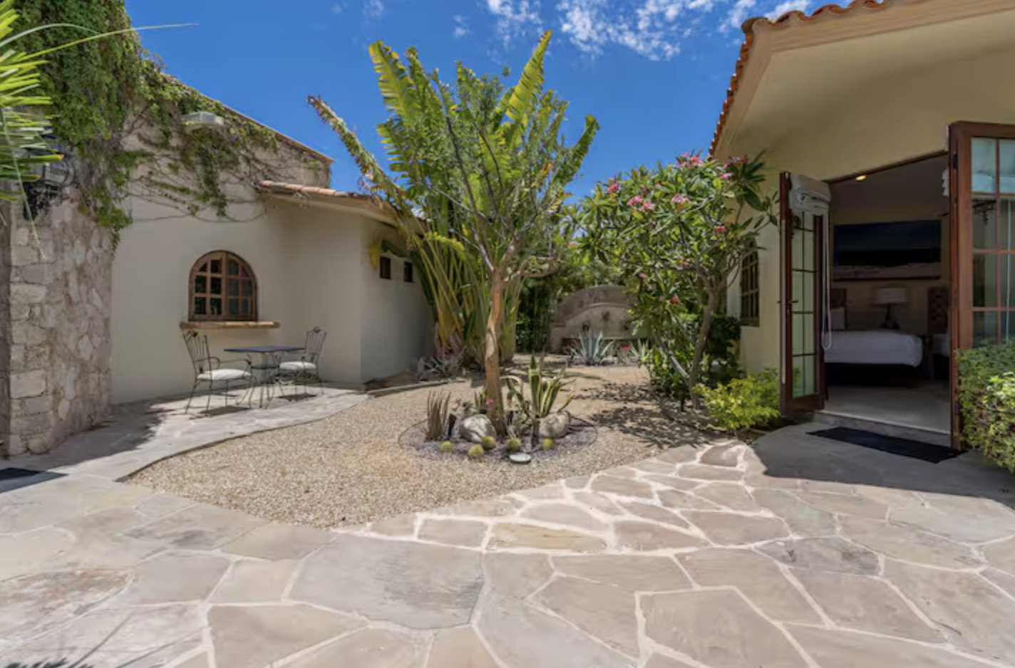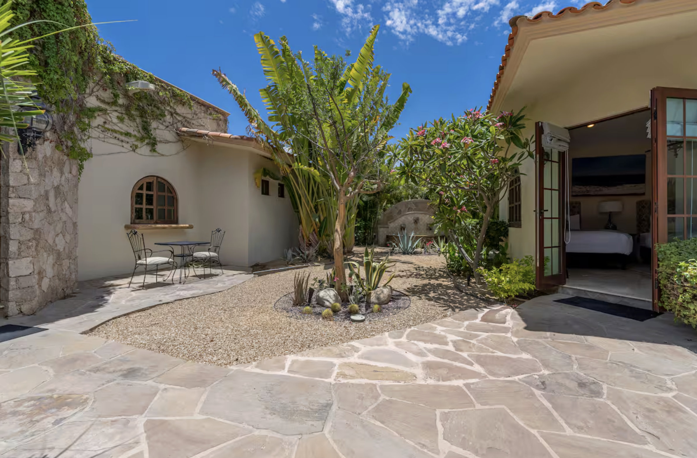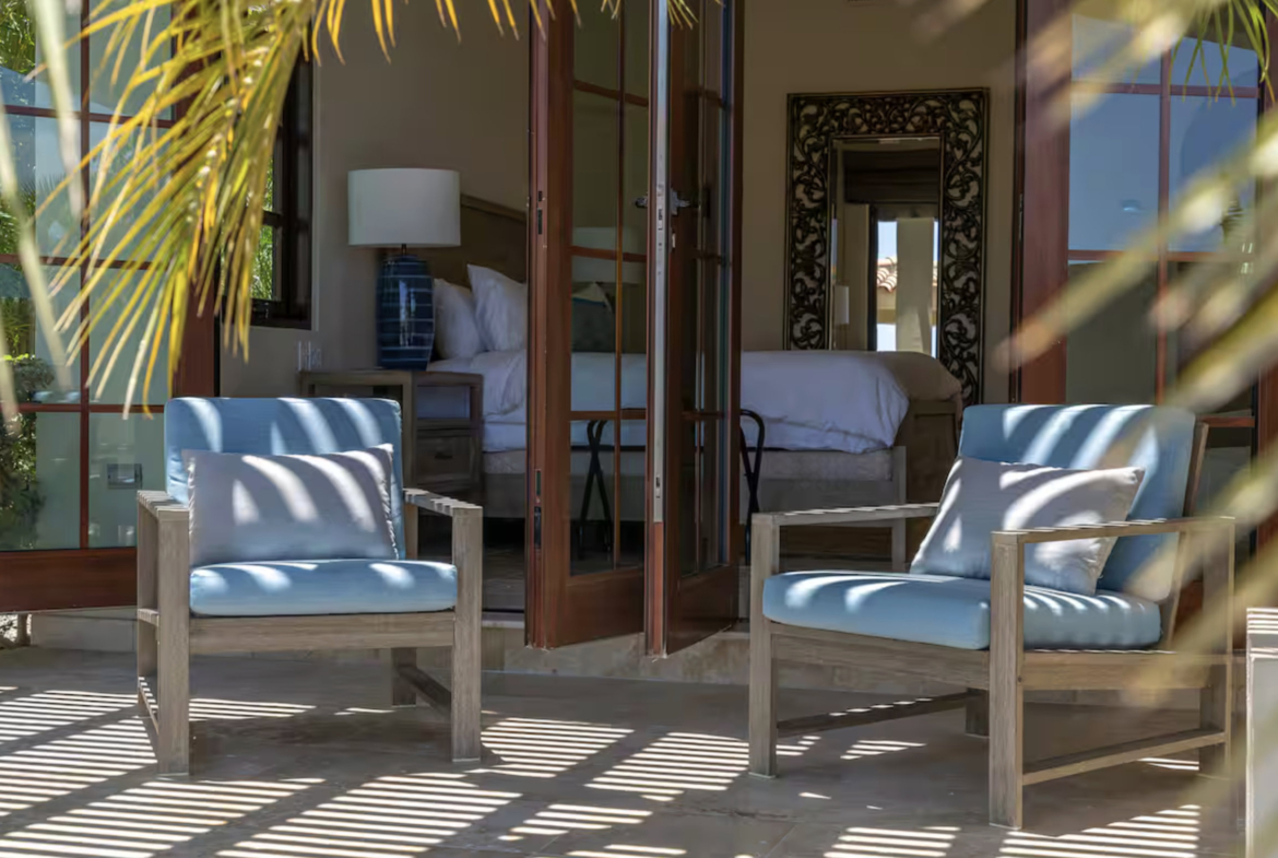 In addition to the two master suites, this rental boasts two private casitas with en suite, and another bedroom suite with a private bath. Other amenities include an open floorplan, infinity-edge swimming pool that can be heated for an additional daily rate, hot tub/spa with palapa sitting area, a large kitchen with all appliances, extended, glass-panel accordion doors for those amazing views and indoor/outdoor feel, and a fiesta-ready, Sonos speaker system.
