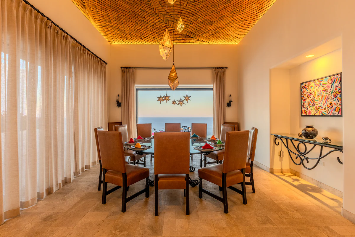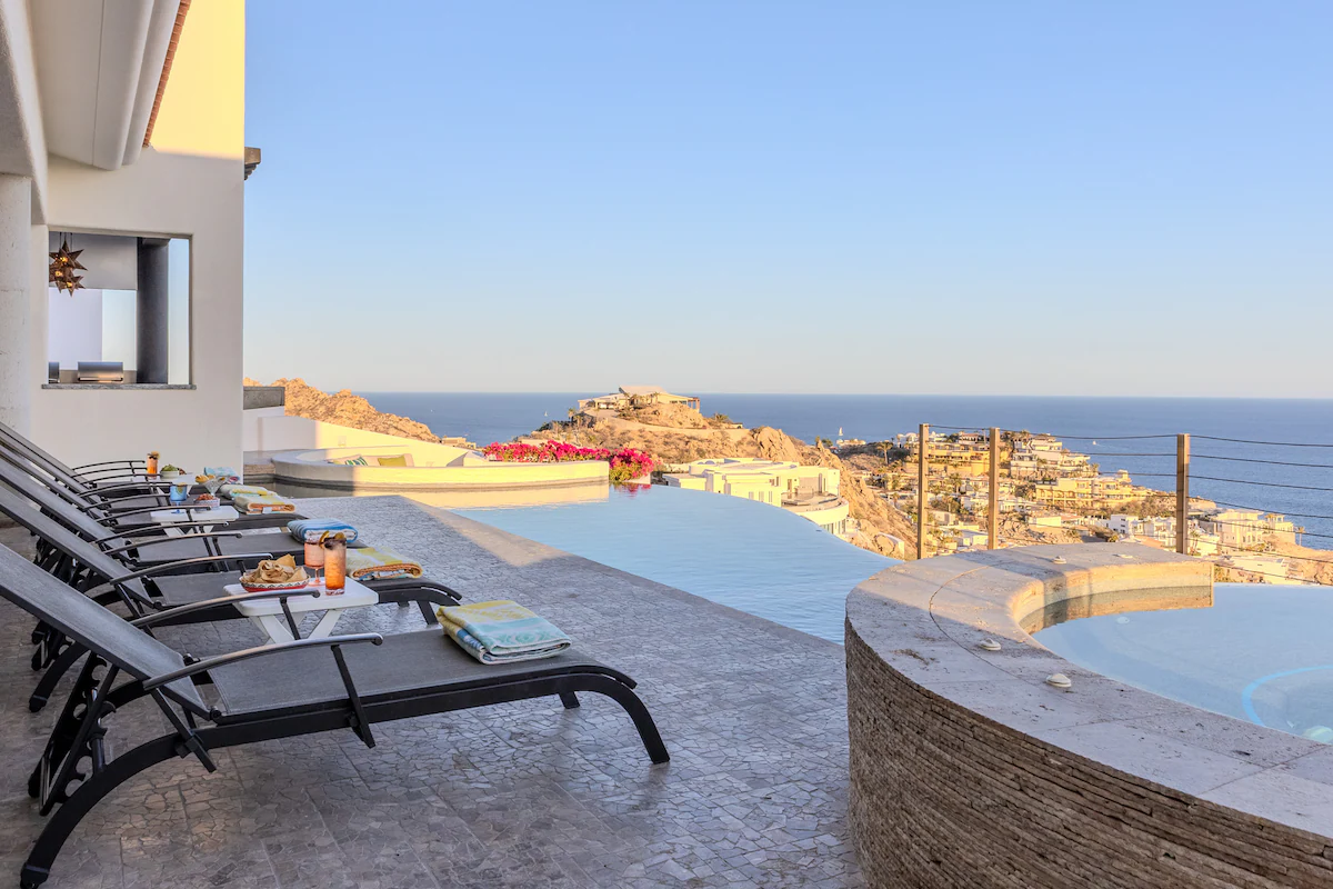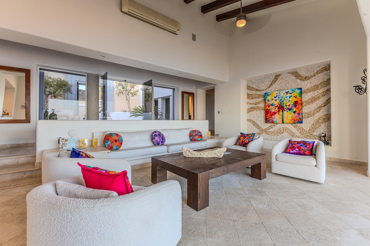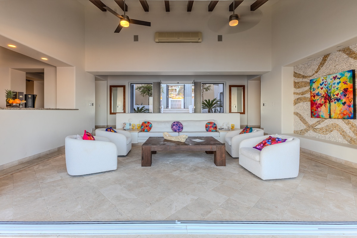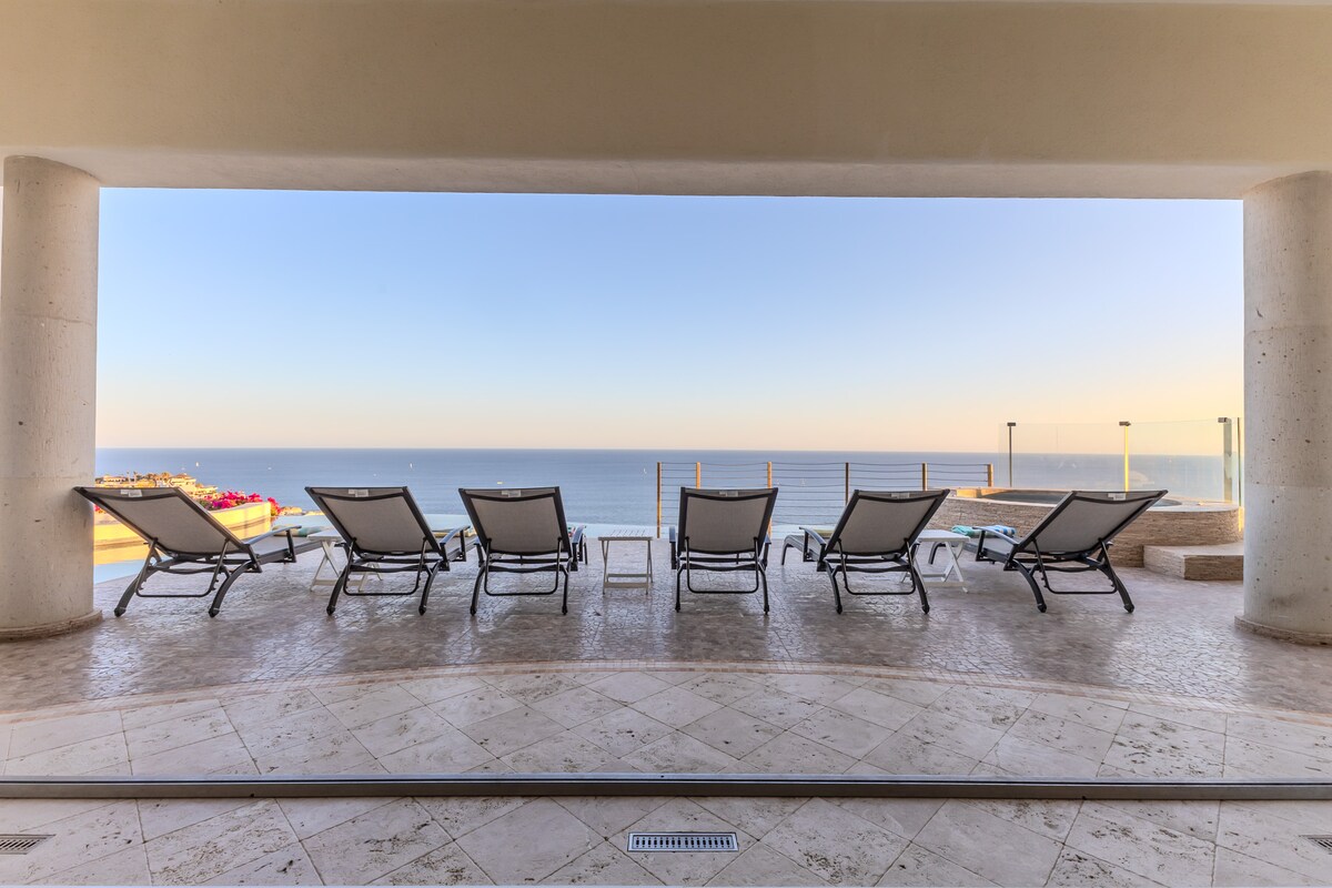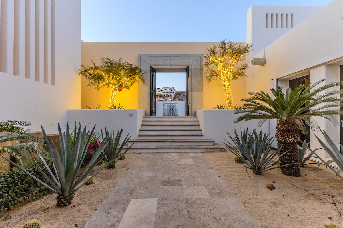 Enjoy the most amazing vacation in this spacious and serene Mexican Villa, located in the hills of Pedregal, a gated community just a few minutes from Downtown Cabo San Lucas and Cabo Marina. Enjoy ocean views from every bedroom, the best sunsets from the infinity pool, a fresh margarita from Mi Casa’s fantastic butler, or having one of the chefs prepare you a home-cooked, authentic dinner. Truly a unique experience.