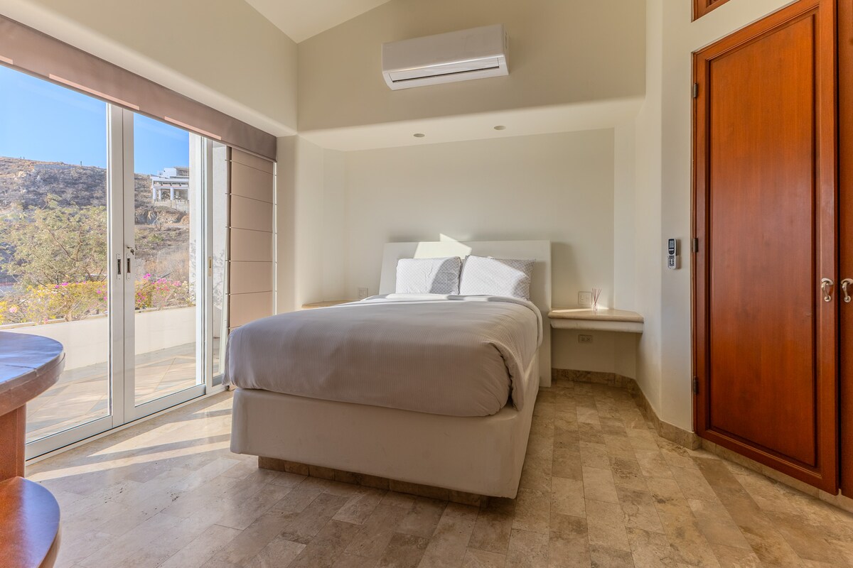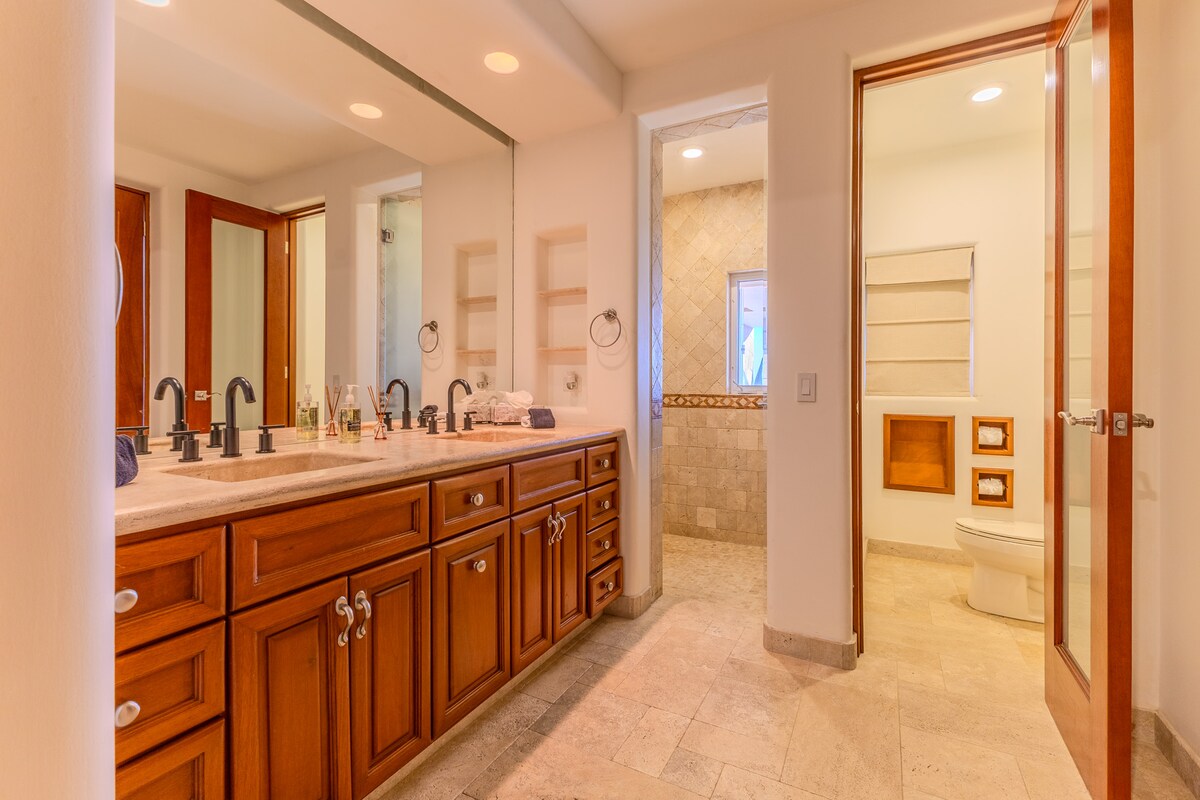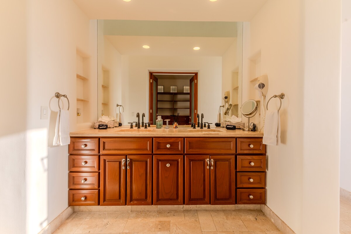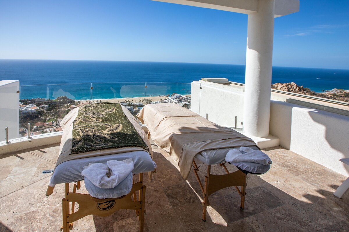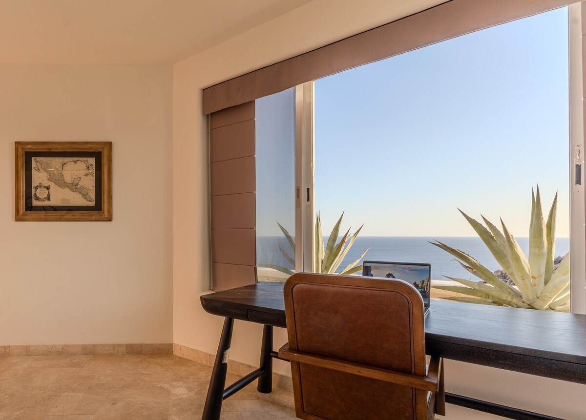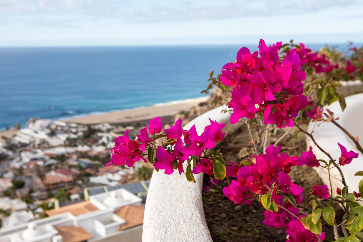 Enjoy the most amazing vacation in this spacious and serene Mexican Villa, located in the hills of Pedregal, a gated community just a few minutes from Downtown Cabo San Lucas and Cabo Marina. Enjoy ocean views from every bedroom, the best sunsets from the infinity pool, a fresh margarita from Mi Casa’s fantastic butler, or having one of the chefs prepare you a home-cooked, authentic dinner. Truly a unique experience.