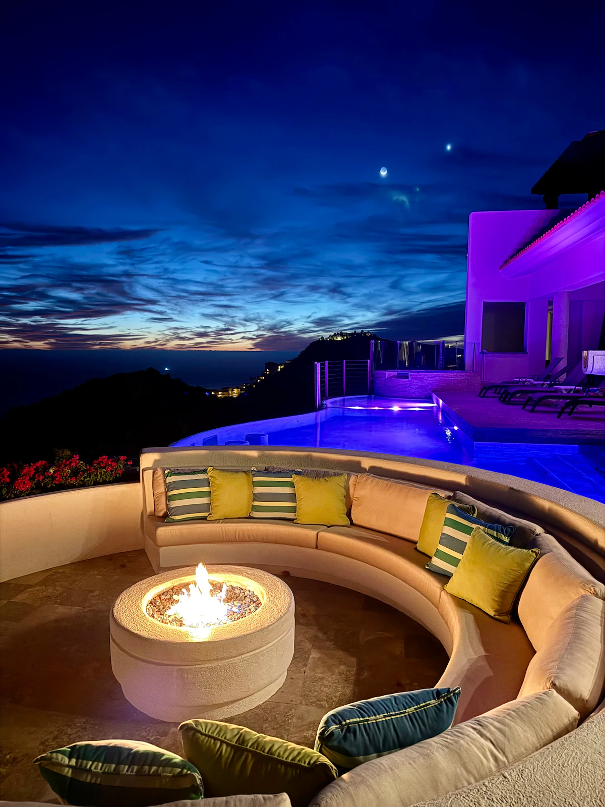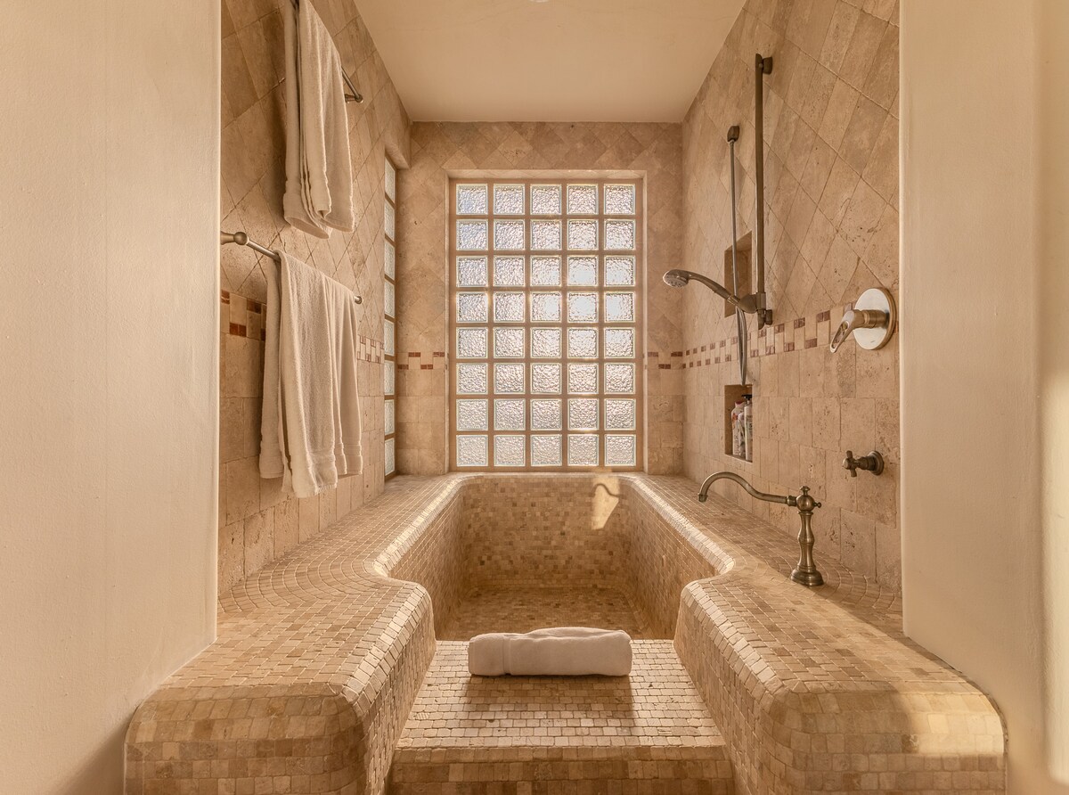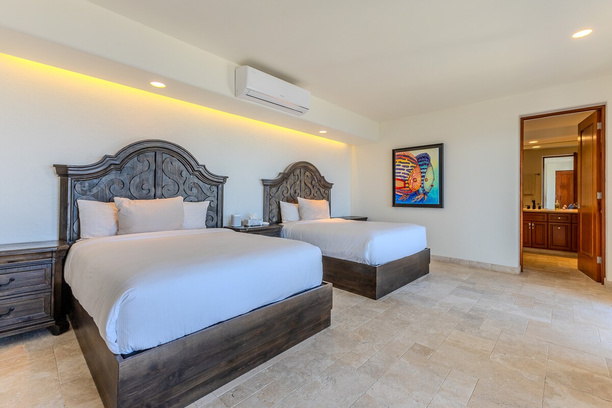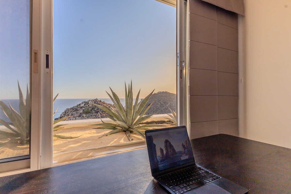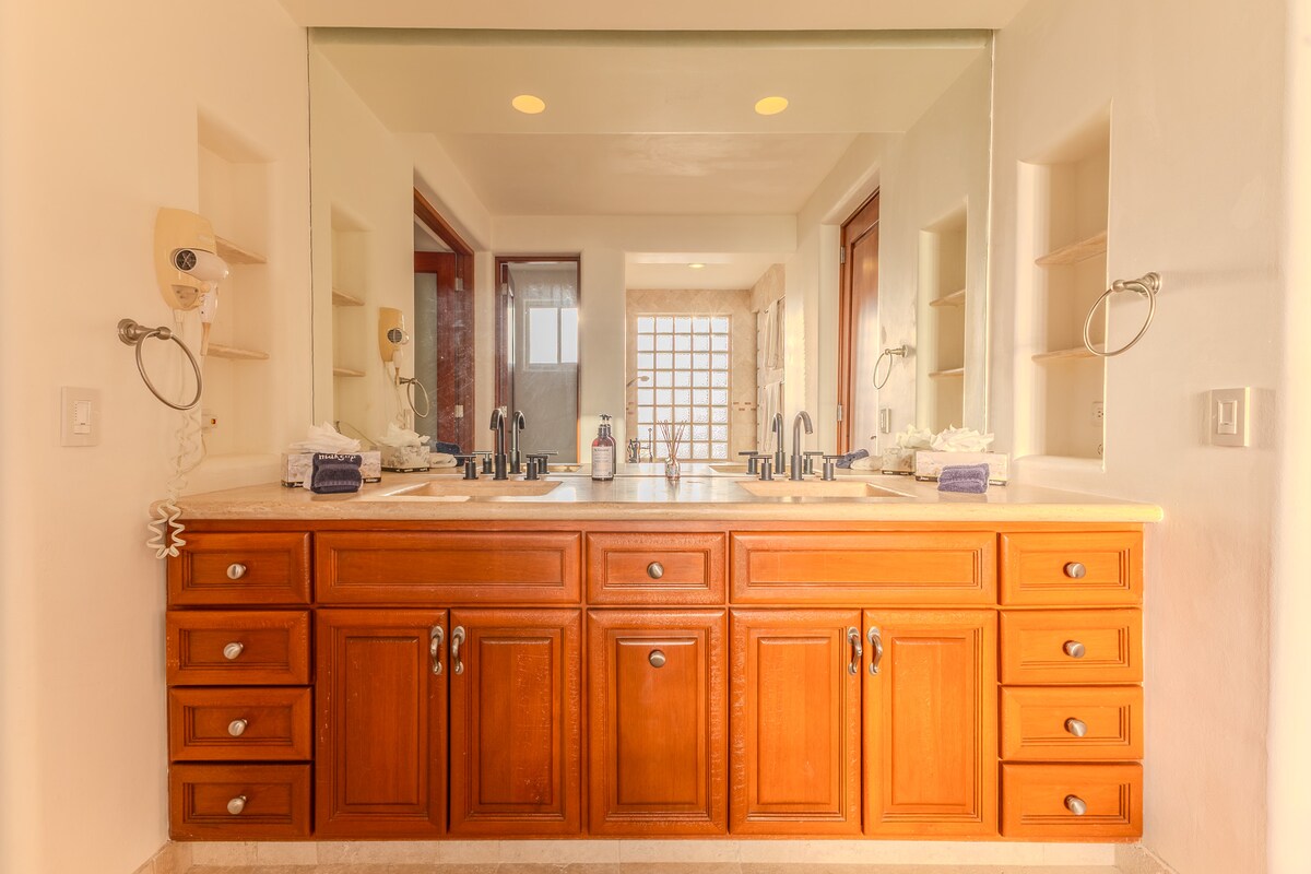 Enjoy the most amazing vacation in this spacious and serene Mexican Villa, located in the hills of Pedregal, a gated community just a few minutes from Downtown Cabo San Lucas and Cabo Marina. Enjoy ocean views from every bedroom, the best sunsets from the infinity pool, a fresh margarita from Mi Casa’s fantastic butler, or having one of the chefs prepare you a home-cooked, authentic dinner. Truly a unique experience.